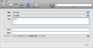 5)「URL」に「smb://ユーザ名:パスワード@ワークグループ名/ホスト名/プリンタ名」のように入力する